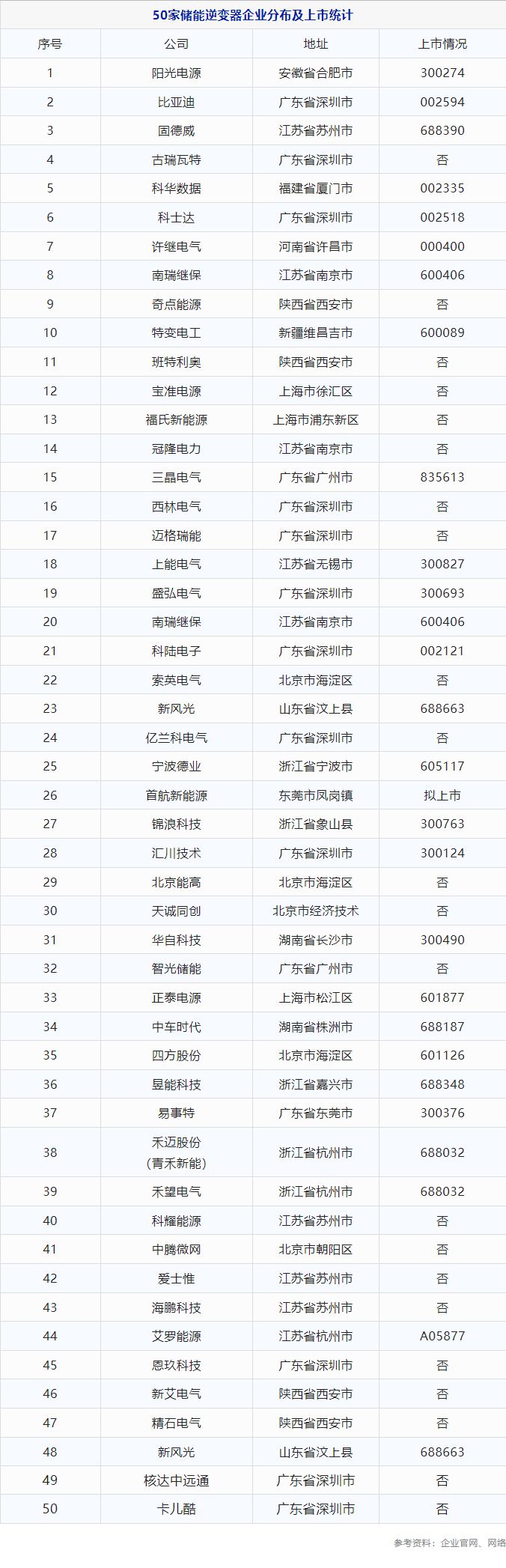 为了方便大家更快了解储能逆变器PCS产业企业情况,我们梳理了50家较为知名的企业名单。